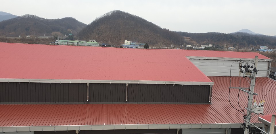 경기도 광주시 궁평리. V250판넬지붕을 칼라강판 슬레이트골로 시공한 사례.