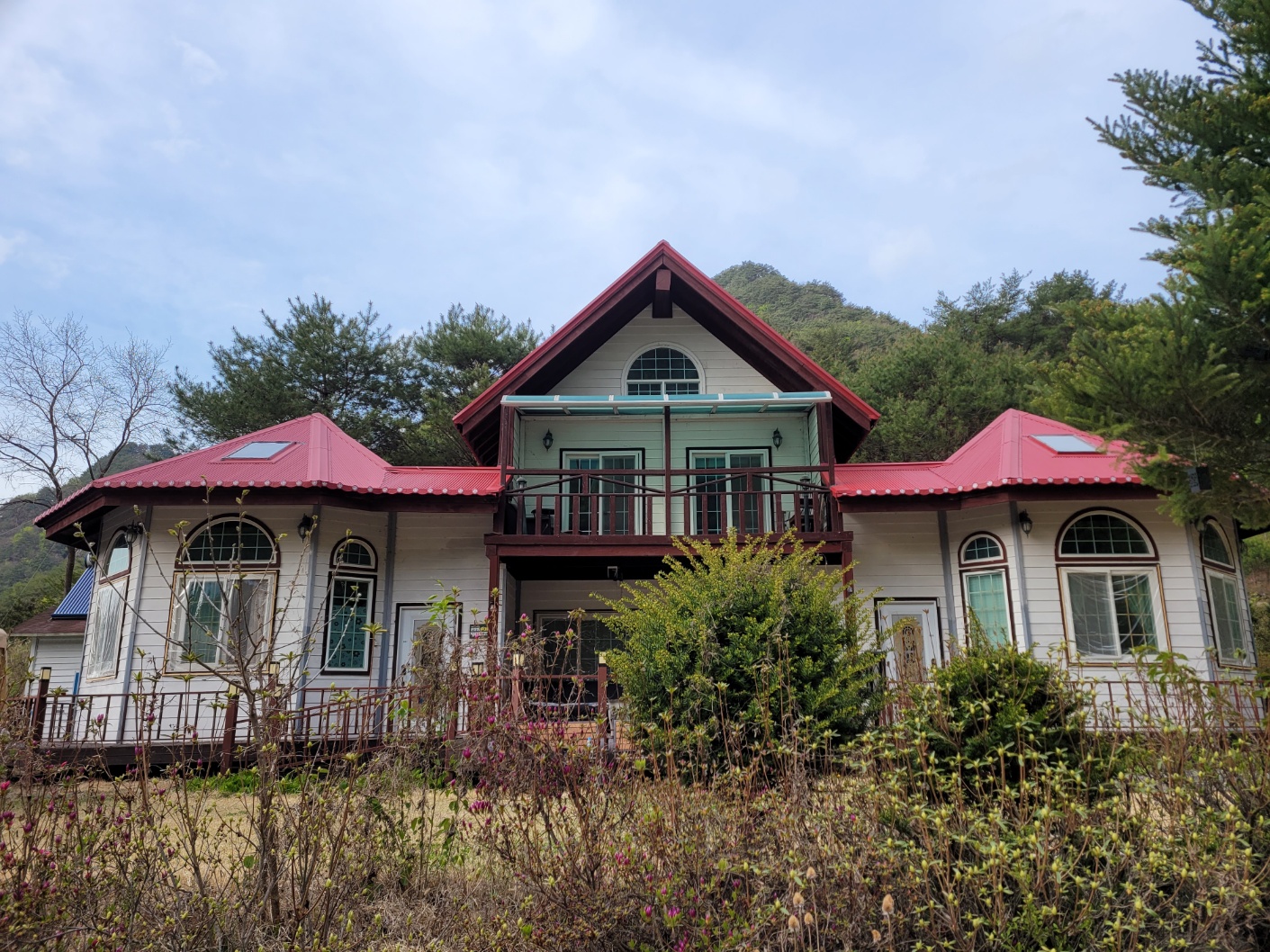 강원도 인제군 소치마을에 위치한 펜션으로, 금속기와지붕의 누수로 인해 칼라강판으로 개량공사함.
