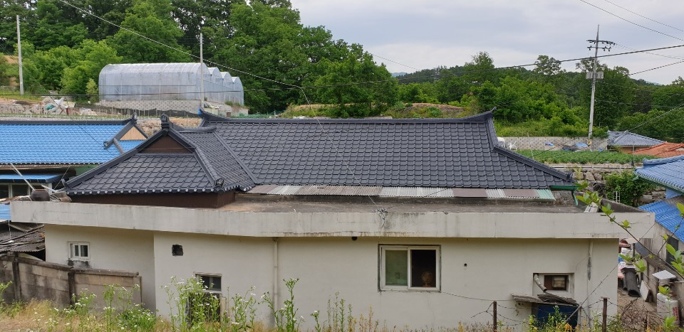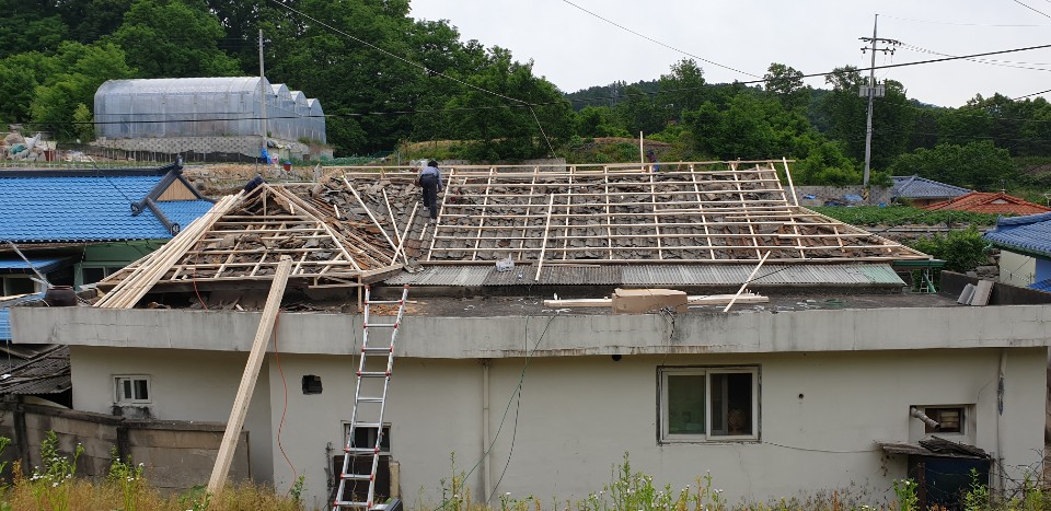 원주시 태장동. 기와지붕이 노후돼 칼라강판 평기와골로 개량공사.